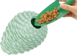 Konuss ar praktisku atveri ļauj to piepildīt ar granulām vai kārumiem. Suns saņem balvu aktīvas spēles ceļā, kas stiprina dabiskos instinktus un pagarina barošanas laiku.