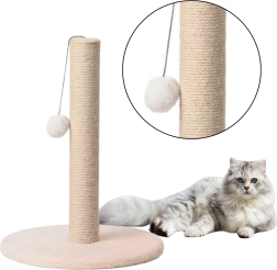 Kompakts bēšs kaķu skrāpējams stabs ar stabilu pamatni un sizala stabu veicina dabisku nagu asināšanu un aktīvas rotaļas. Komplektā ir jautrs piekarams pompons, izturīga sizala virve un mīksta, viegli kopjama virsma ikdienas komfortam un higiēnai.