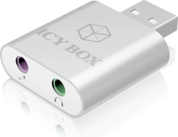 Paplašiniet savu datoru ar uzticamu analogo audio, izmantojot ICY BOX adapteri. Ierīce piedāvā divus 3,5 mm portus – vienu austiņām un otru mikrofonam – tāpēc tā ir ideāli piemērota spēļu un biroja headsetiem ar atdalītiem konektoriem. Pateicoties optimizētajam skaņas čipsetam, jūs iegūsiet līdzsvarotu un tīru skaņu bez sarežģītu draiveru instalēšanas.