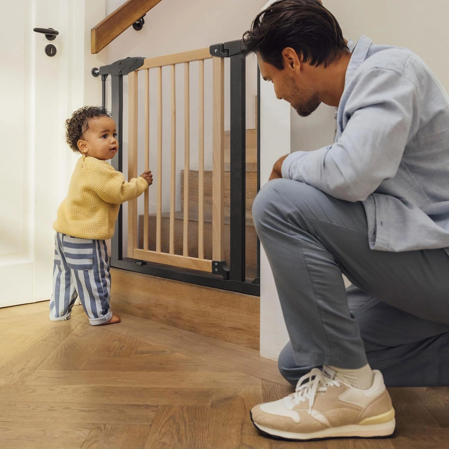 Barjera ir aprīkota ar īpašu drošības mehānismu, kas neļauj mazajiem bērniem to atvērt. Divdaļīgais atvēršanas un aizvēršanas mehānisms nodrošina maksimālu ērtību un drošību mājās.