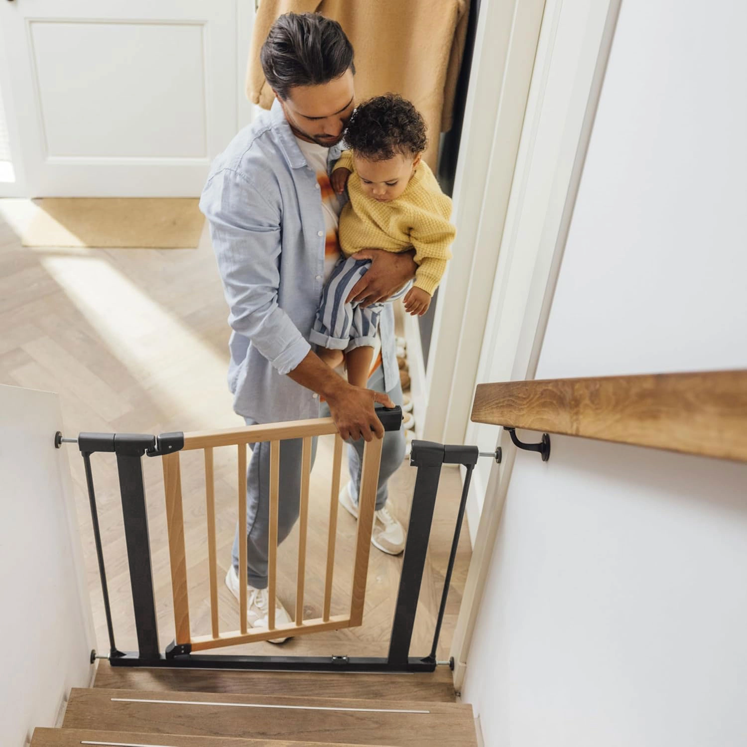 Īpašs drošības mehānisms neļauj bērniem atvērt barjeru. Divvirzienu atvēršana, automātiska aizvēršanās un vadība ar vienu roku nodrošina ērtu lietošanu.
