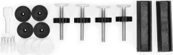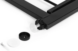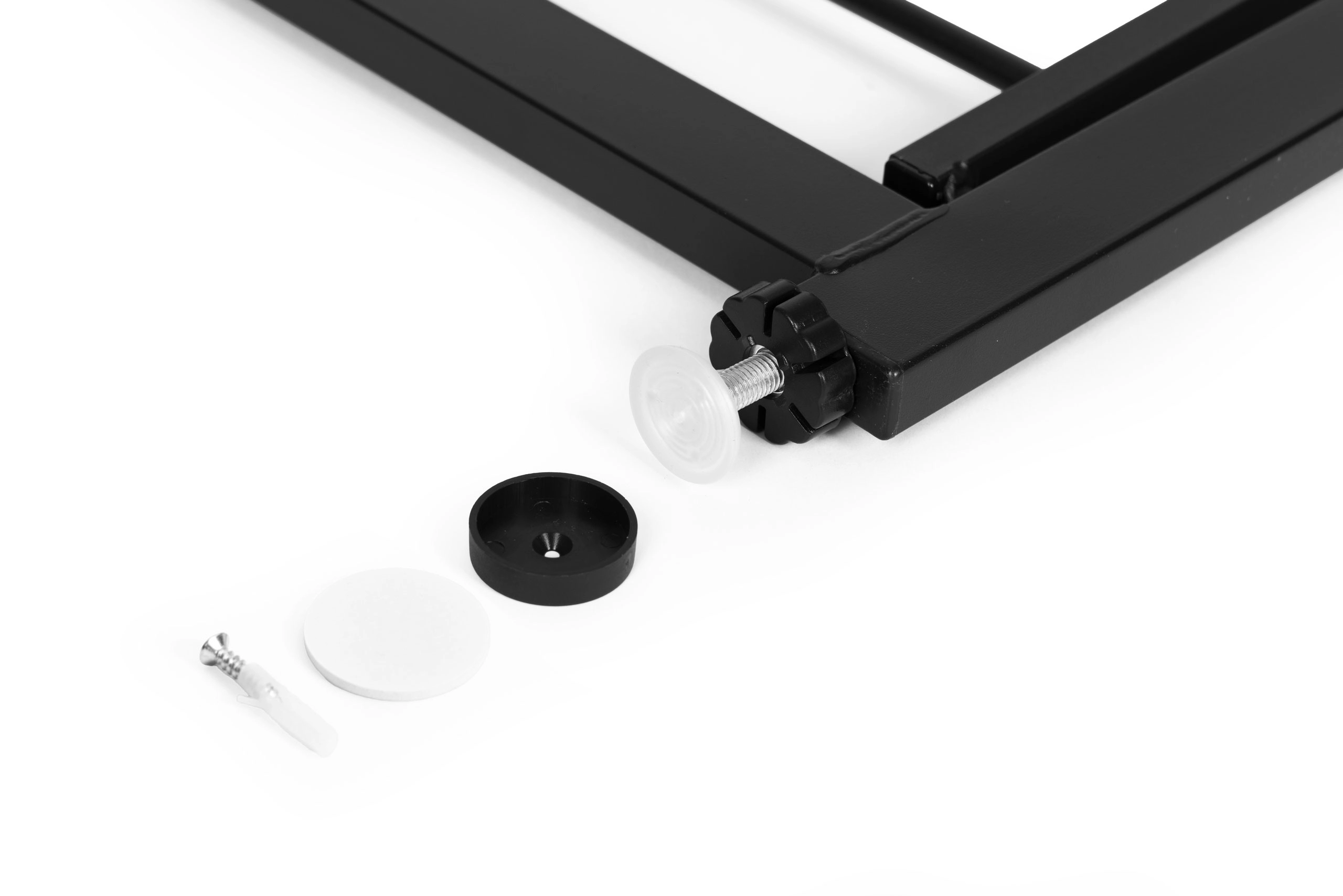 Montāža ir bez instrumentiem un bez urbšanas, pateicoties 4 punktu spiediena stiprinājumam. Komplektā ietilpst aizsargpaplāksnes, kas pasargā virsmas no bojājumiem, kā arī piederumi pastāvīgai pieskrūvēšanai, ja nepieciešama fiksēta instalācija. Izturīgs pulverkrāsots tērauds nodrošina ilgmūžību un stabilitāti.