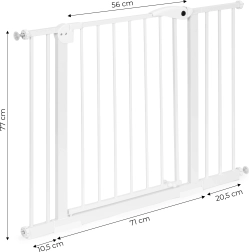 Pielāgojiet barjeras platumu ar iekļautajiem paplašināšanas paneļiem un izveidojiet ideālu risinājumu dažādiem durvju un kāpņu izmēriem. Barjera lieliski noder arī, lai norobežotu zonas no jūsu četrkājainajiem draugiem.