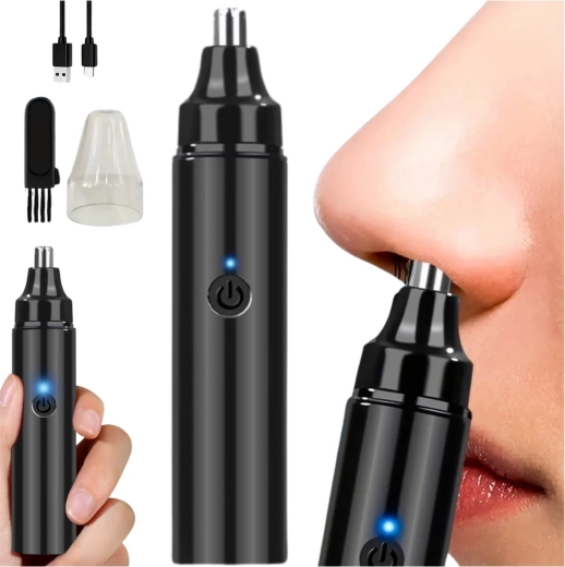 Droša nerūsējošā tērauda galviņa: Aizsargā ādu no kairinājuma un piedāvā precīzu, saudzīgu deguna matiņu apgriešanu.