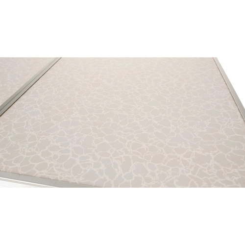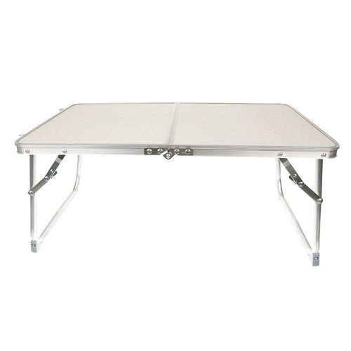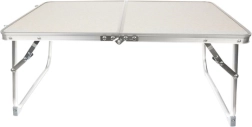 MDF virsmas un alumīnija elementu kombinācija ir viegla, izturīga un piemērota lietošanai dārzā un kempingā.