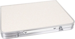 Salocīts galds pārtop plānā koferītī ar rokturi, ko viegli ievietot auto vai kempera bagāžniekā.