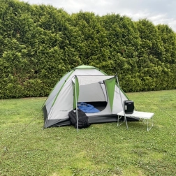 Galds tiek izlikts aptuveni 10 sekundēs – atveriet virsmu, izvelciet kājas un tās nofiksējiet. Pateicoties izmēriem 60 × 40 × 26 cm, iegūstat kompaktu, bet funkcionālu virsmu gatavošanai, servēšanai un spēlēm teltī. Nelielais svars 1,15 kg un salokāmā konstrukcija ietaupa vietu automašīnā, skapī vai kemperī.