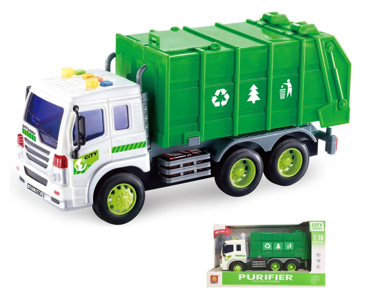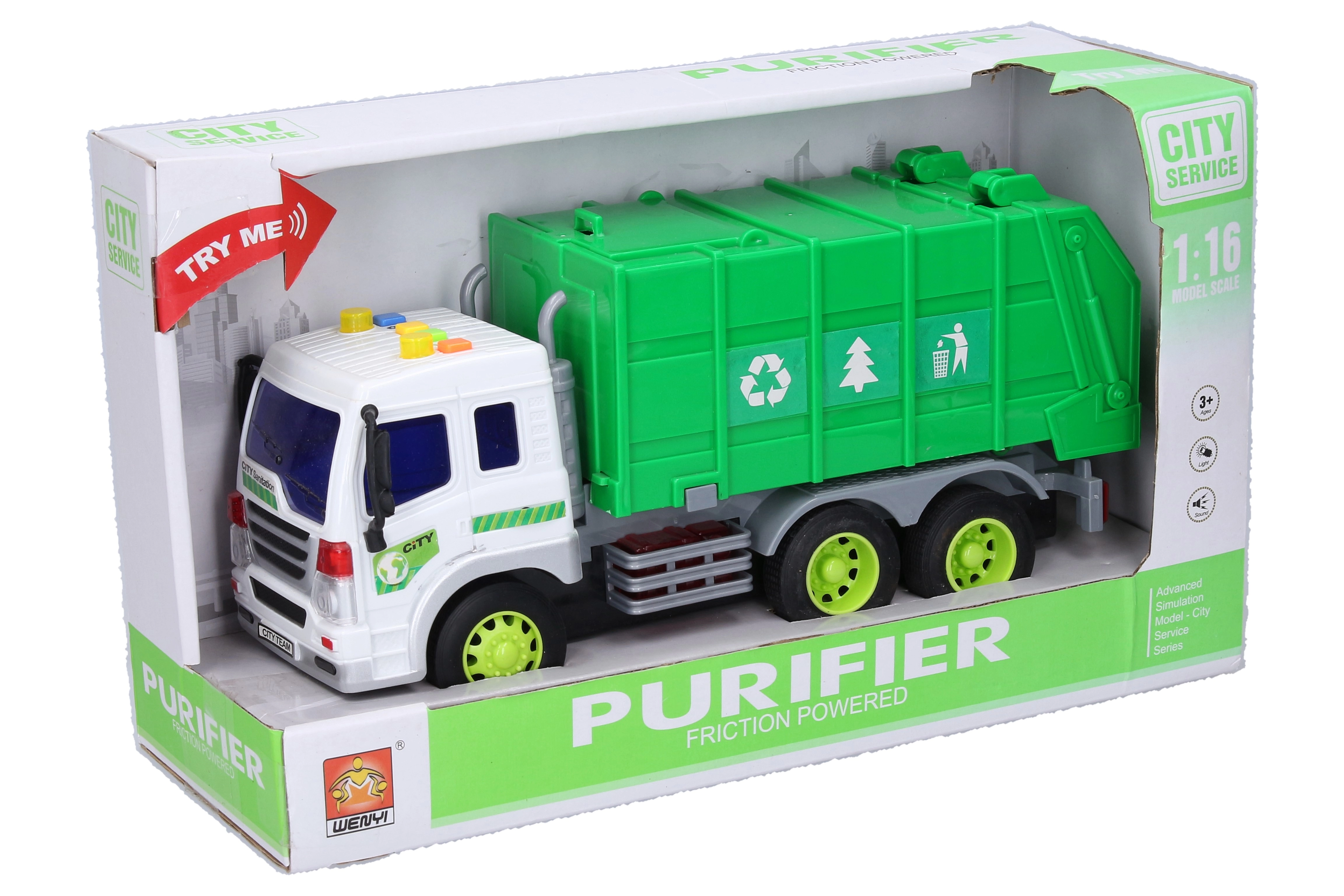 Pie jums nonāk rotaļlieta, kas aizraus ne tikai mazos šoferus – atkritumu vedējs ar efektiem. Šis 28 cm garais auto ir aprīkots ar inerces mehānismu, kas nodrošina ilgāku un reālistiskāku spēli.
