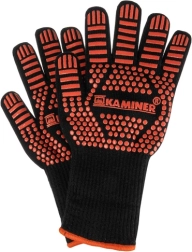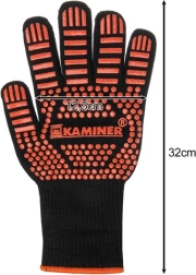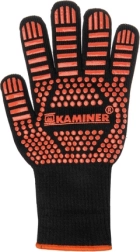 Šie karstumizturīgie KAMINER cimdi ir paredzēti darbam ar karstiem traukiem, restēm un pannām. Izturīga vairākslāņu konstrukcija ar preoksidētas šķiedras piejaukumu un silikona pretbuksēšanas pārklājumu nodrošina drošu satvērienu un īslaicīgu aizsardzību pret augstām temperatūrām gan gatavojot, gan grilējot.
