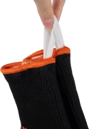 Pretbuksēšanas silikona punkti un svītras uz plaukstām un pirkstiem nodrošina stingru trauku un piederumu satvērienu, samazina izslīdēšanas risku un palielina precizitāti, pārvietojot karstus priekšmetus.