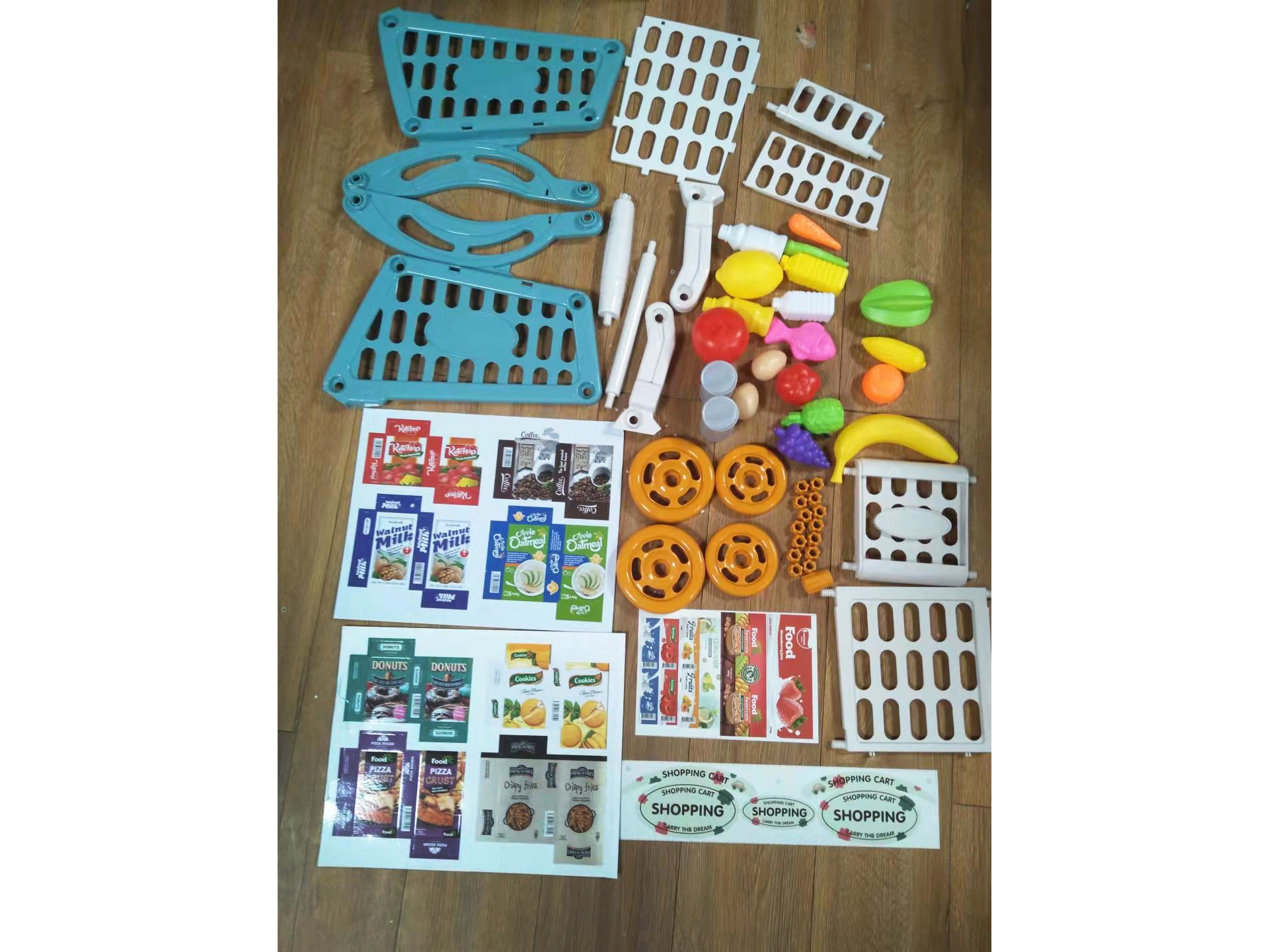 Veiciniet bērnu fantāziju un veikala lomu spēles ar praktiskajiem iepirkumu ratiņiem. Pateicoties bagātīgajam pārtikas produktusatam, bērni viegli atdarina pieaugušo iepirkšanos, attīsta sīko motoriku un sociālās prasmes. Salikšana ir vienkārša, pateicoties pārskatāmajai attēlu instrukcijai.