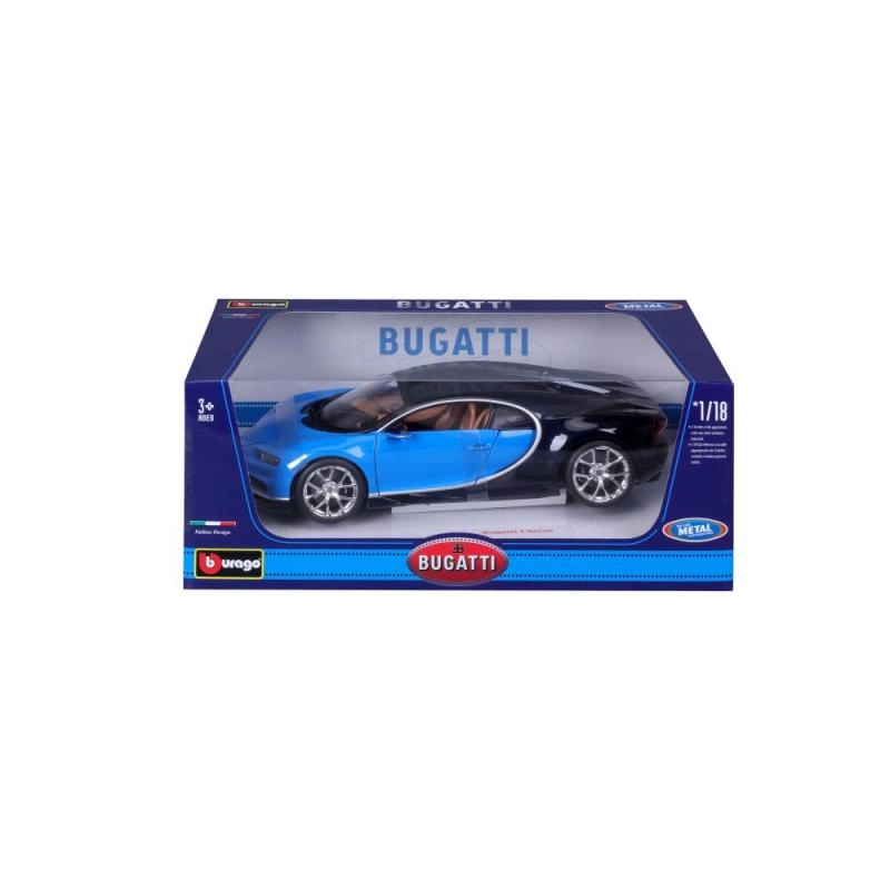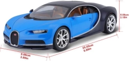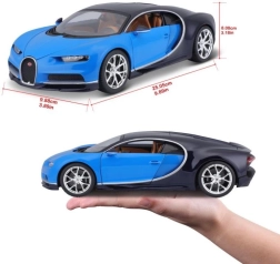 Atklājiet reālistisku BUGATTI Chiron repliku populārajā mērogā 1:18. Modelis apvieno metāla virsbūvi ar smalki izstrādātām plastmasas detaļām un piedāvā uzticamas proporcijas, autentisku krāsojumu zilā–melnā kombinācijā un kvalitatīvus logo apdruku. Ideāli piemērots kā kolekcionējams modelis un kā premium rotaļlieta bērniem no 3 gadu vecuma.