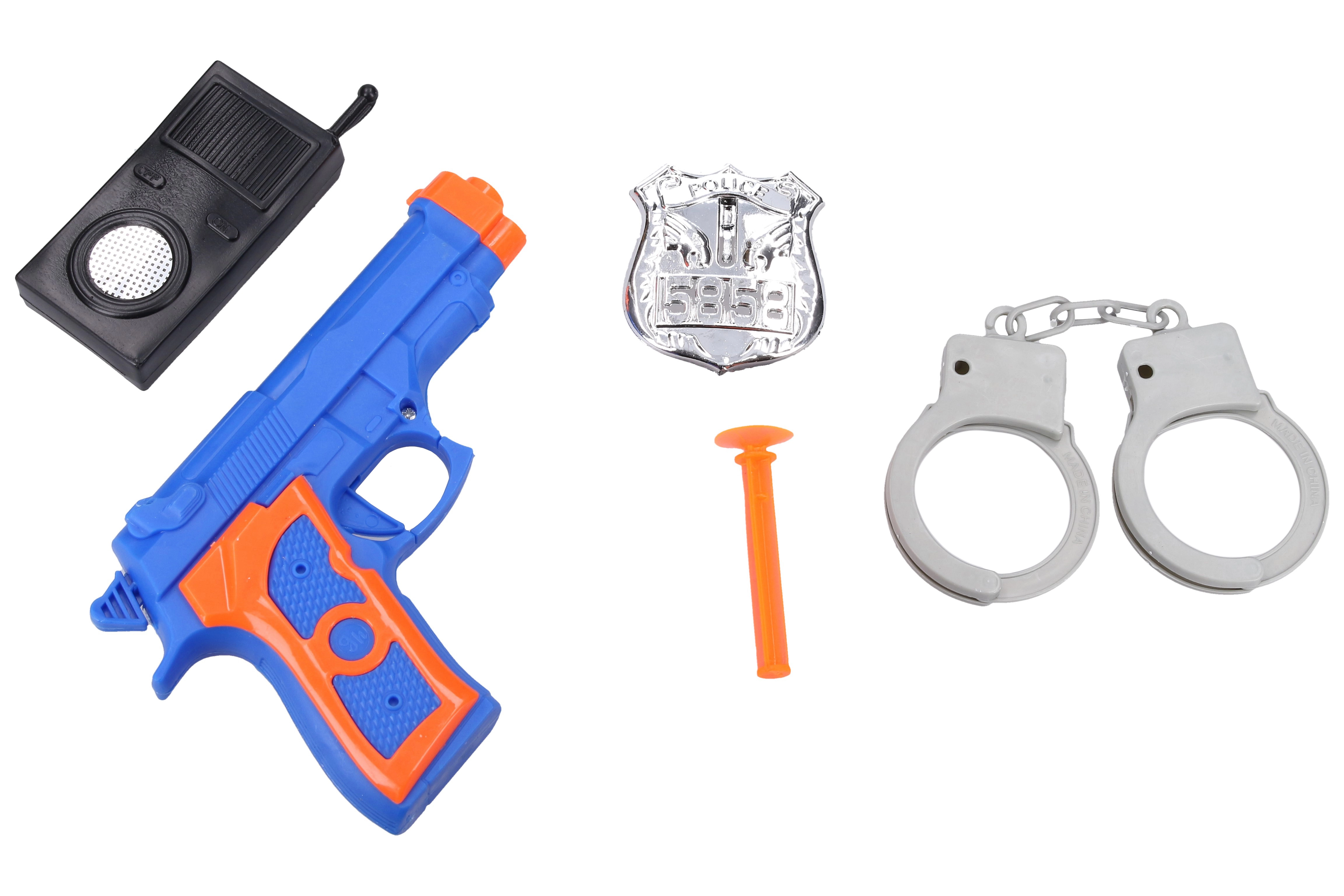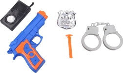 Komplektā ietilpst pistole ar piesūcekņu bultām drošai šaušanai, nozīme īstam policista izskatam, rokudzelži “arestiem” un rācija operāciju koordinēšanai. Komplekts piemērots bērniem no 3 gadu vecuma un veicina iztēli un lomu spēles.