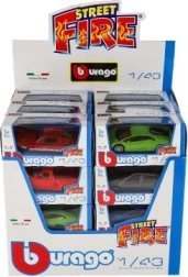 Ikoniskā BBURAGO STREET FIRE sērija piedāvā lieliskus metāla auto mērogā 1:43, kas izceļas ar reālistisku izskatu un izturīgu izpildījumu. Pateicoties kompaktajiem izmēriem (apmēram 9 × 4 cm), tie ir lieliski piemēroti spēlēšanai mājās un ceļā, kā arī glīti izskatās jebkura kolekcionāra vitrīnā.