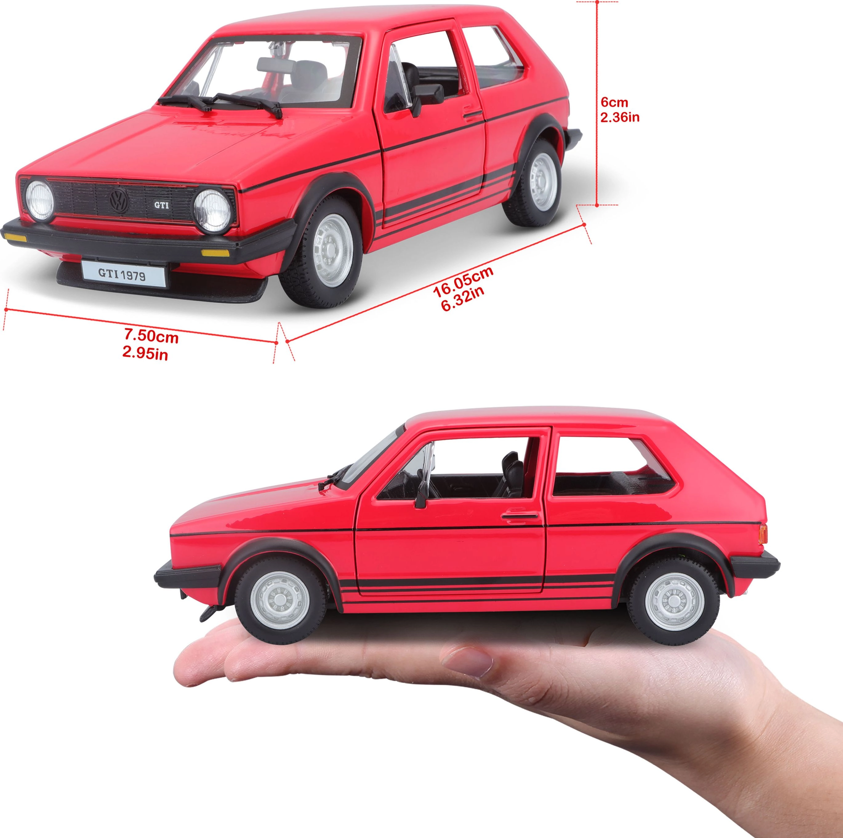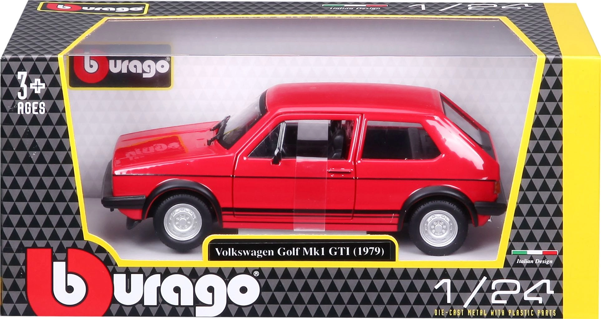 Papildiniet savu Bburago kolekciju ar iespaidīgu metāla automašīnas modeli Volkswagen Golf MK1 GTI mērogā 1:24 sarkanā krāsā.