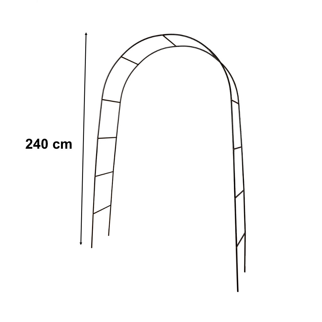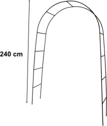 Metāla pergola ar 240 cm augstumu ir ideāli piemērota ziedu arkas veidošanai dārzā, uz terases vai pagalmā. Minimalistiskā forma un elegantais melnais noformējums viegli sader gan ar modernām, gan klasiskām kompozīcijām. Dzelzs rāmis ar stieņu diametru 1,3 cm ir viegls, bet pietiekami stingrs drošai ložņājošo augu vadīšanai.