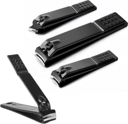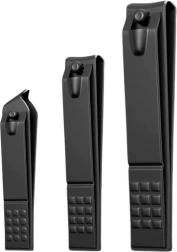 Atklājiet praktiskumu un precizitāti vienā komplektā. Trīs knaiblītes dažādos izmēros – lielas, mazas un ar slīpu asmeni – ļauj ērti kopt roku un kāju nagus, tostarp arī cietākus nagus. Nerūsējošais tērauds nodrošina ilgmūžību, tīru griezumu un vienkāršu kopšanu, savukārt teksturēts satvēriens sniedz drošību darbā.