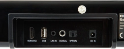 - HDMI (ARC), optiskā ieeja (Toslink), koaksiālā (Coaxial), USB, line-in (AUX)