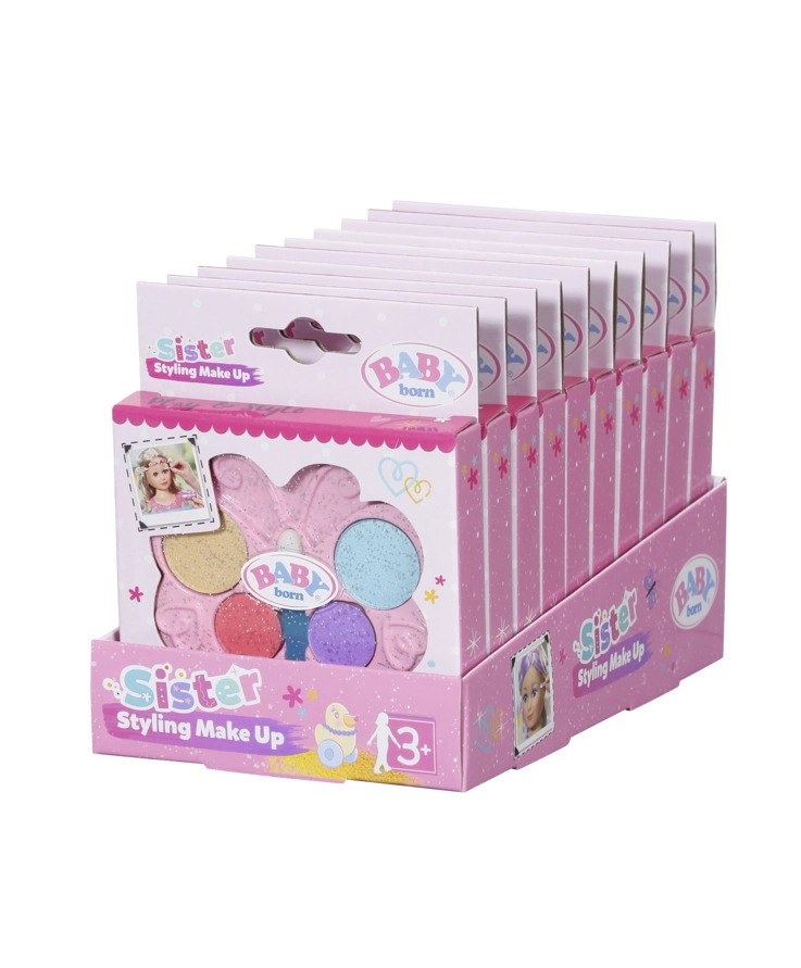 Izbaudiet stundām ilgu izklaidi ar BABY born Māsīte grimēšanās spēļu komplektu, kas piedāvā tauriņa formas krāsainā grima paleti radošai jūsu BABY born leļļu stilizēšanai.