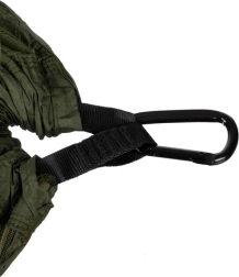 Komplektā iekļautas karabīnes un siksnas, lai varētu ātri salikt tikai 6 minūšu laikā bez instrumentiem.
