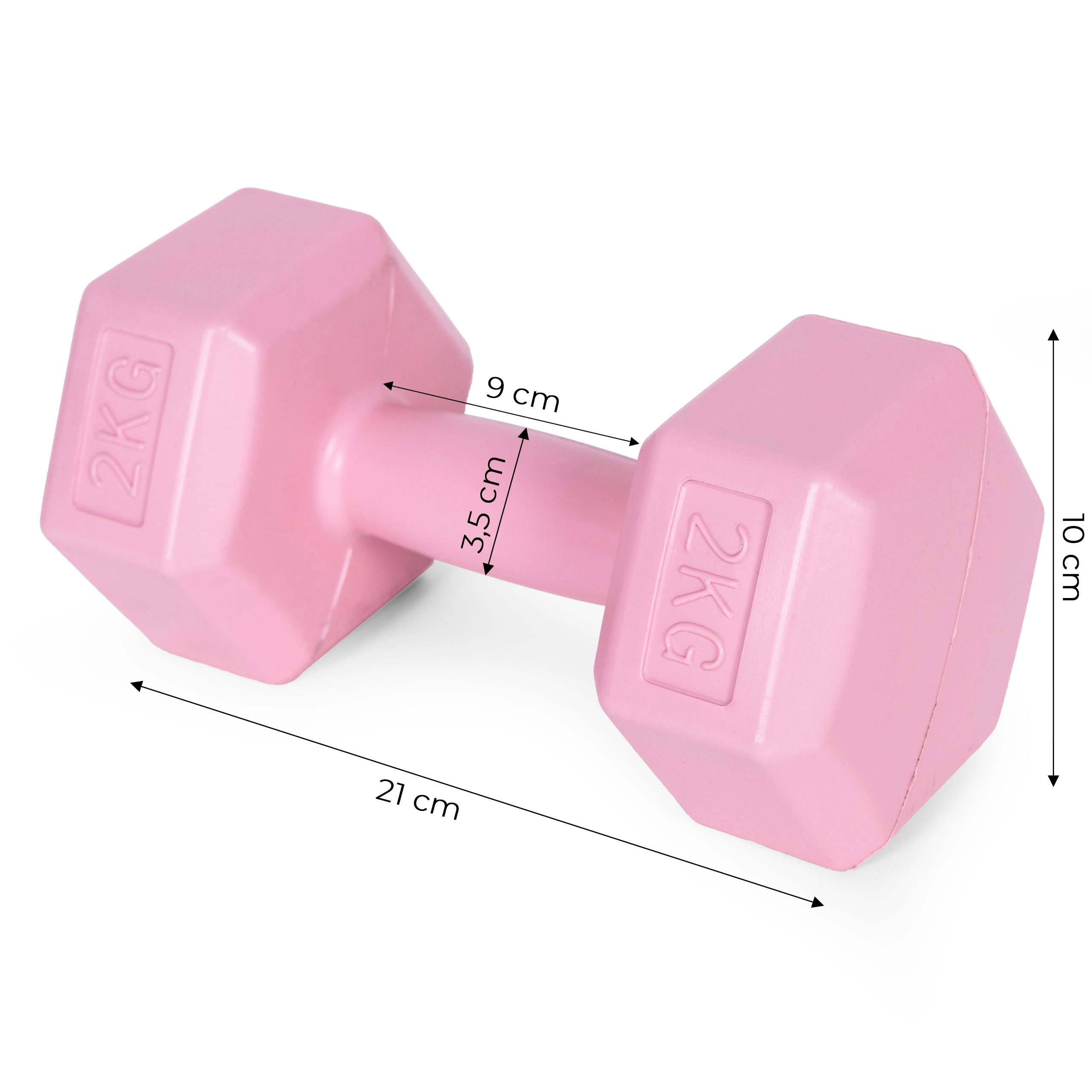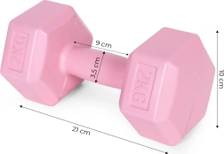 Trenējieties efektīvi mājās ar rozā ModernHome hanteļu pāri. Komplektā ir 2 gabali pa 2 kg, kas palīdz vispārējai visa ķermeņa stiprināšanai – rokām, mugurai, vēderam, kājām un sēžas muskuļiem. Pateicoties sešstūra formai, hanteles ir stabilas un drošas, tāpēc tās var droši nolikt gan apļa treniņos, gan pauzēs.