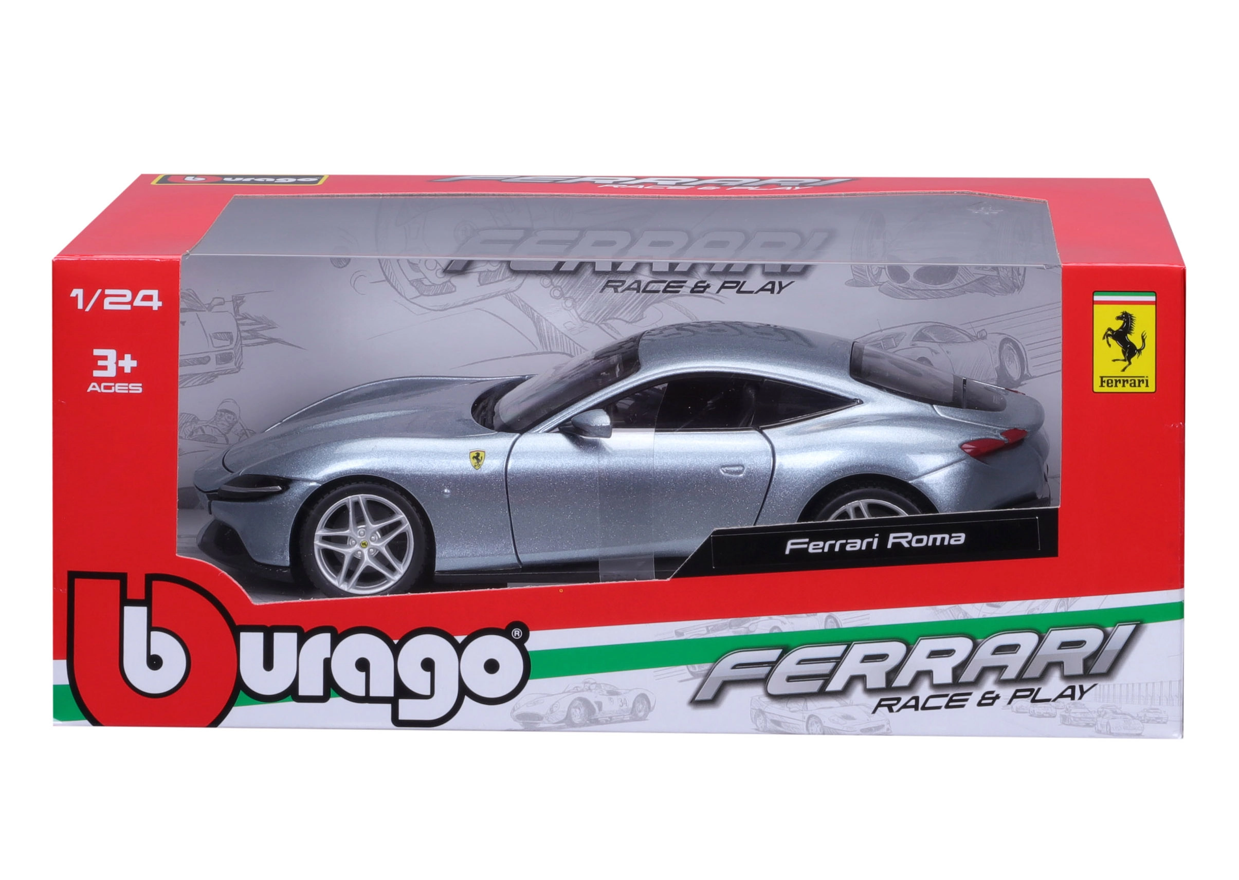 Piedāvājam pelēku Ferrari Roma automobiļa modeli mērogā 1:24 no atzītā zīmola Bburago. Šis modelis ir detalizēta luksusa auto replika un sniedz lielisku pieredzi ikvienam kolekcionāram: