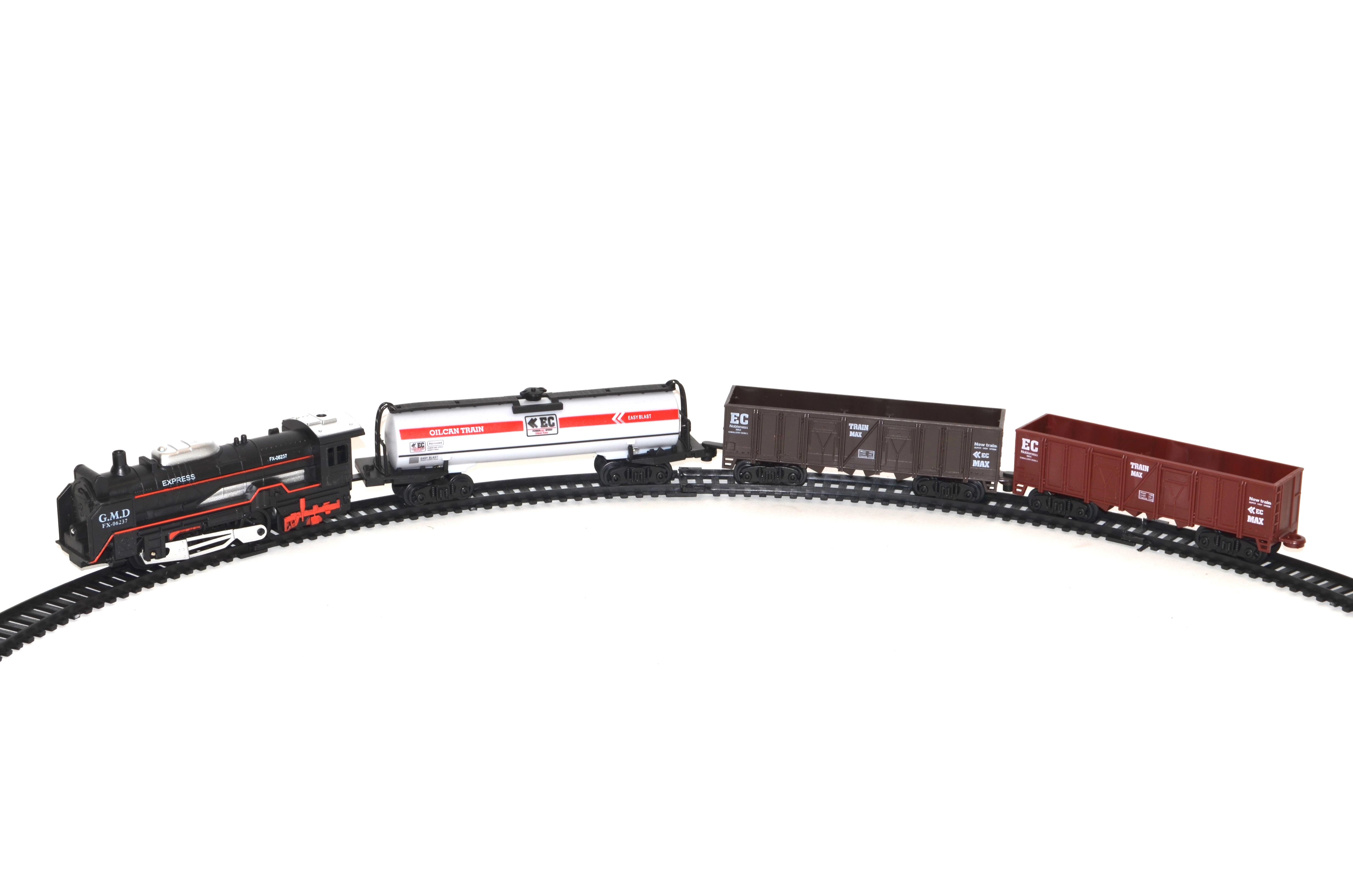 Šis bērnu vilcieniņš uz baterijām sniedz reālistisku izklaidi, pateicoties lokomotīves gaismas efektiem un skaņām. Salieciet vienkāršu apaļu apli 104 × 68 cm, pievienojiet 3 vagoniņus un izbaudiet vienmērīgu braucienu pa izturīgām plastmasas sliedēm.