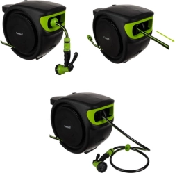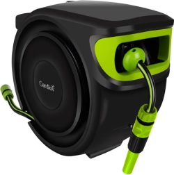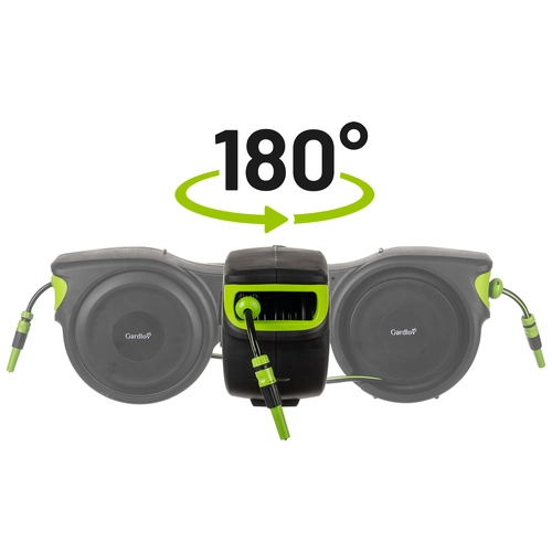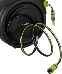 Kompleks risinājums dārzam – komplektā ietilpst automātiskais ruļļa turētājs, 25 m dārza šļūtene, 2 m padeves šļūtene, 1/2" ātrspraudņi, universāla krāna pāreja, sienas stiprinājums ar 180° pagriezienu un montāžas dībeļi. Pateicoties vienmērīgai, kontrolētai tinšanai un pistoles bloķēšanai, darbs ir ātrs, tīrs un drošs.