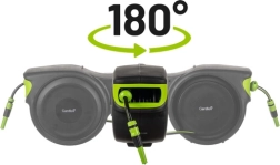 Integrēts mehānisms vienmērīgi un kontrolēti satin šļūteni atpakaļ spolē. Beidziet ar sapinušām cilpām un lieku piepūli.