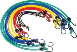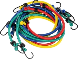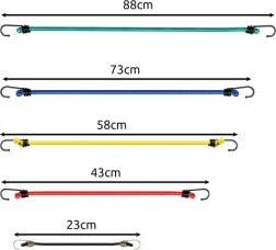 Šīs universālās bagāžas gumijas ir piemērotas ne tikai automobiļiem, bet arī kempingam un izdzīvošanas aktivitātēm. Tās saglabā elastību pat pēc atkārtotas izstiepšanas un ir vienkāršas lietošanā, jo katra siksna ir aprīkota ar izturīgu metāla āķi ātrai piestiprināšanai.