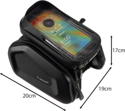 Somiņa ir piemērota tālruņiem līdz 7,2", un tās izmēri ir 20 x 19 x 17 cm. Izgatavota no izturīgiem materiāliem, kas nodrošina ilgu kalpošanas laiku un funkcionalitāti. Ideāli piemērota tiem, kas vēlas turēt svarīgās lietas pa rokai katrā braucienā ar velosipēdu.