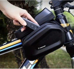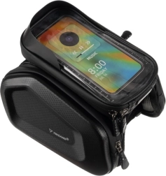 Velosipēda stūres somiņa Trizand ir ideāls aksesuārs jebkuram kaislīgam velobraucējam. Pateicoties izturībai pret laikapstākļu ietekmi un praktiskajam dizainam, tā piedāvā lielisku aizsardzību un ērtu piekļuvi jūsu telefonam un citām nepieciešamām lietām tieši uz stūres. Somiņai ir caurspīdīgs skārienlogs, kas ļauj viegli lietot tālruni.