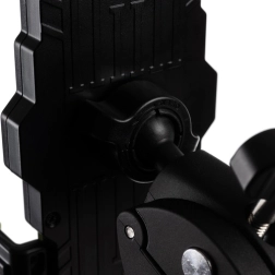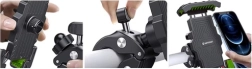 Montāža ir ļoti vienkārša un neprasa nekādus instrumentus – pietiek pagriezt vienu skrūvi, un turētājs ir gatavs! Tas ir savietojams ar stūrēm, kuru diametrs ir no 0,7" līdz 1,5", kas nodrošina lielu elastību dažādiem velosipēdu un motociklu veidiem.