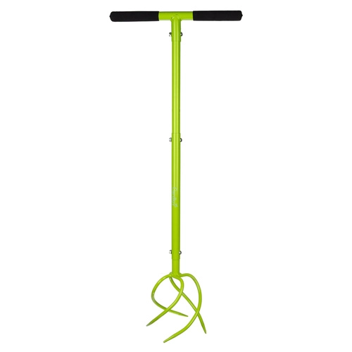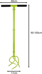 Regulējamais augstums 90–100 cm ļauj pielāgot instrumentu jūsu augumam, lai varētu strādāt stāvus bez muguras sāpēm. Spirālveida zobi viegli ieķeras augsnē, uzlabo tās struktūru un sagatavo to sējai vai stādīšanai. Ideāli dobēm, malu kopšanai un rindstarpām.