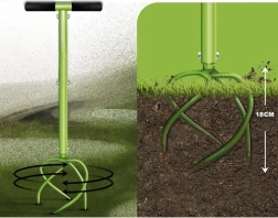 Divkāršie spirālveida zobi iespiežas augsnē, sašķeļ saspiestās kārtas un uzlabo gaisa un ūdens cirkulāciju. Ideāli dobumu sagatavošanai pirms stādīšanas.