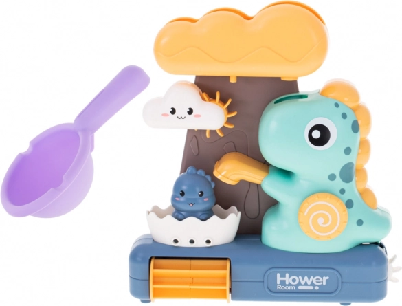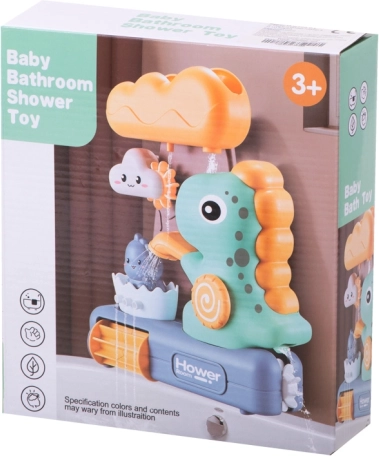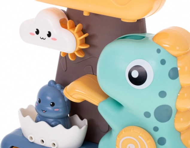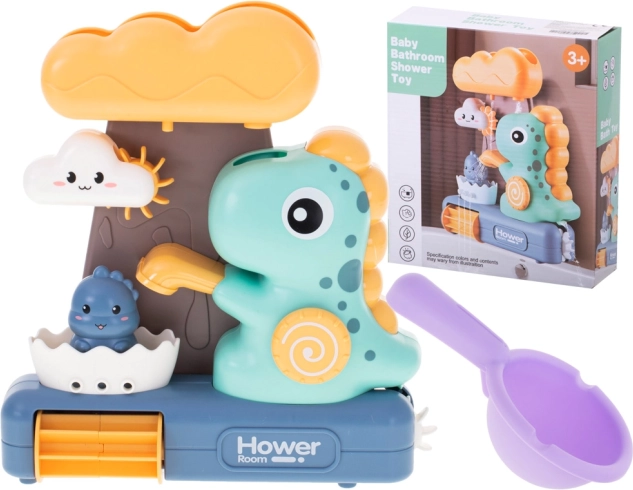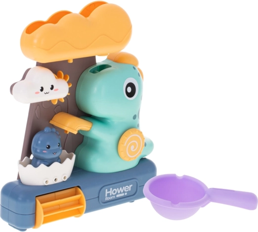 Bērnu vannas rotaļlieta ar dinozauriem un ūdens riteni ir lielisks veids, kā padarīt mazāko bērnu peldēšanos interesantāku. Spēle paredz ūdens ieliešanu augšējā traukā lielā mākoņa formā, no kura ūdens brīvi plūst cauri visām rotaļlietas daļām, nodrošinot vizuālu izklaidi bērniem.