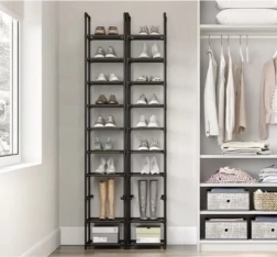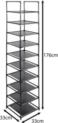 Vienkārša montāža bez instrumentiem aizņem vien piecas minūtes, pat nepieredzējušiem lietotājiem. Plaukts ar desmit plauktiem nodrošina plašu vietu līdz desmit apavu pāriem.