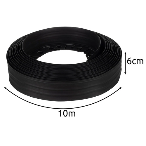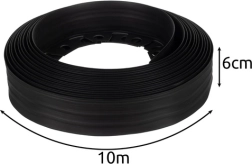 Produkts ir veidots tā, lai derētu jebkuram dārzam, pateicoties iespējamai garuma vienkāršai pielāgošanai. 6 cm augstums efektīvi novērš zāles un sakņu izplatīšanos, saglabājot dārzu koptu un glītu. Pateicoties elegantajai melnajai apdarei, apmale estētiski saskan ar apkārtējo stādījumu.