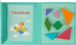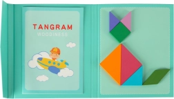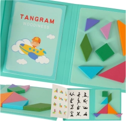 Izklaidējoša un gudra spēle bērniem no 3 gadu vecuma: magnētiska grāmata ar krāsainu koka tangramu. Pateicoties magnētiem, bērni var veidot figūras jebkur, nezaudējot detaļas. Komplektā iekļauta grāmata ar 96 paraugiem krāsainā un melnbaltā versijā. Attīsta loģisko domāšanu, radošumu un sīko motoriku – ideāls Montessori palīglīdzeklis mājās, ceļā un skolā.