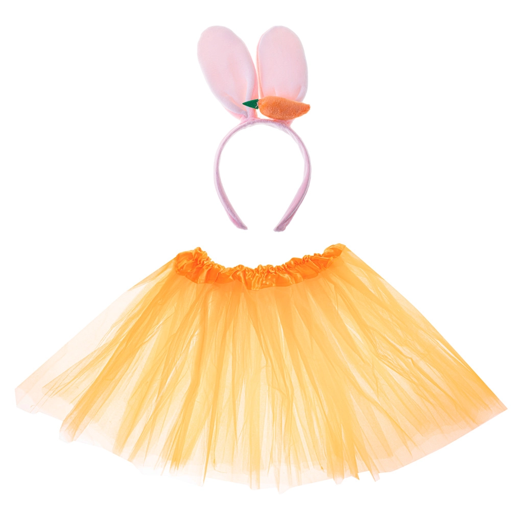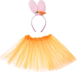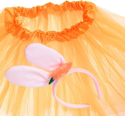Ietver oranžu tutu svārciņu un matu stīpu ar ausīm un burkānu.