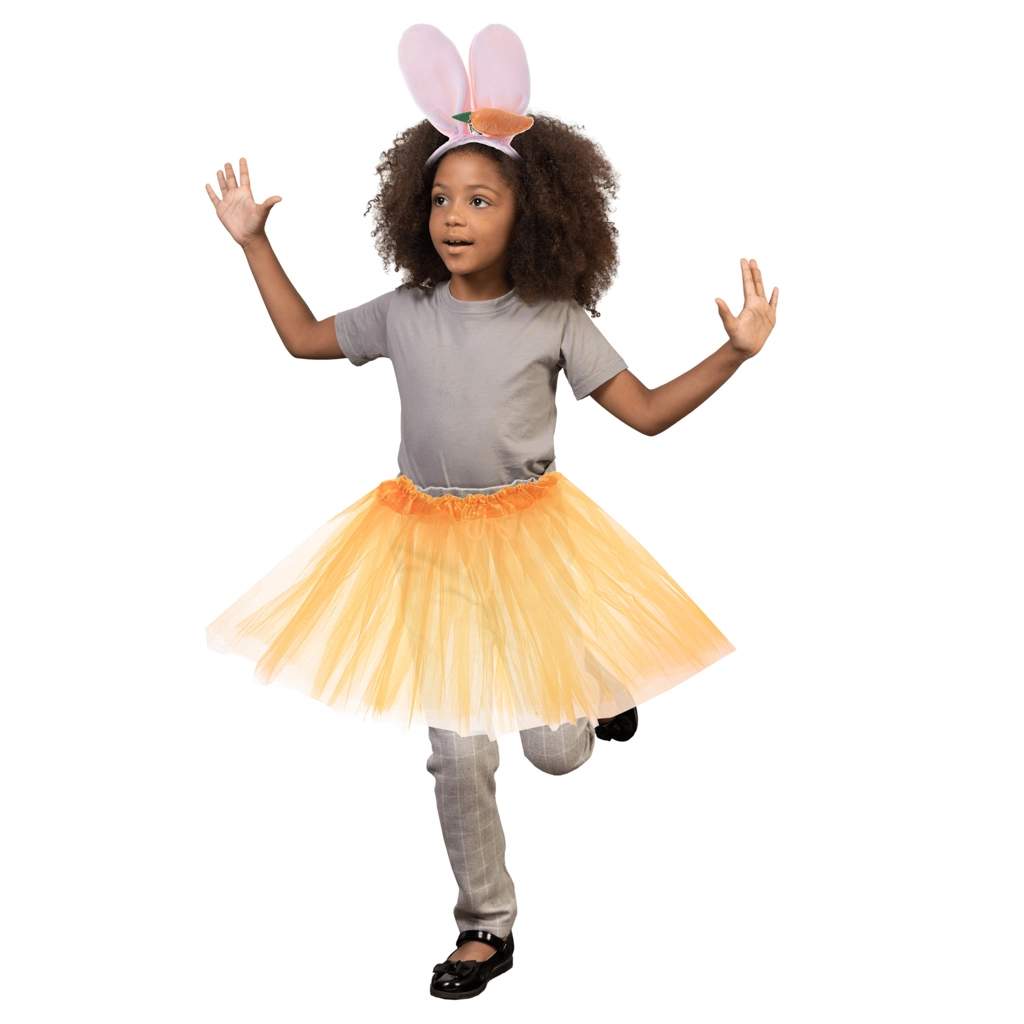 Meklējat lielisku kostīmu, kas sajūsminās gan jūsu bērnu, gan pārējos? Šis draudzīgā zaķa kostīms ar oranžu tutu svārciņu un matu stīpu ar burkānu ir tieši tas, kas vajadzīgs!