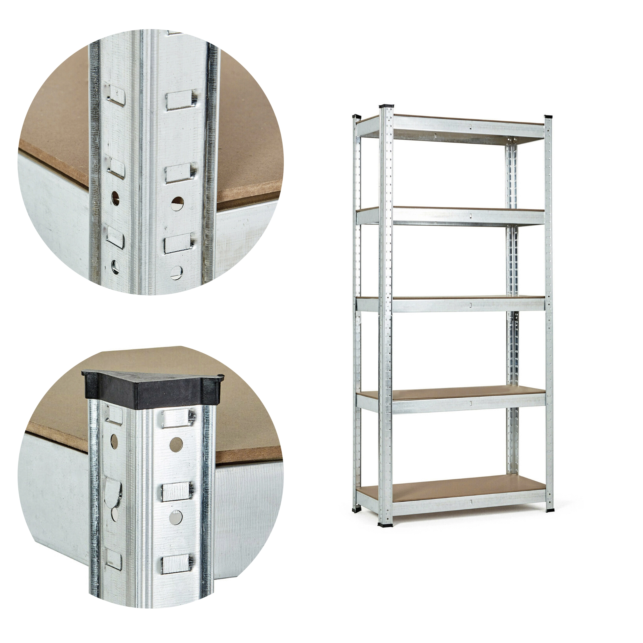 Cinkota tērauda konstrukcija pasargā plauktu no mitruma un korozijas, padarot to ideāli piemērotu lietošanai arī vidēs ar paaugstinātu mitrumu. Savienošanas sistēma ar “zobu” ievietošanu atverēs nodrošina vienkāršu montāžu un augstu stabilitāti pat pie liela noslogojuma. Aizsargkājiņas novērš grīdas bojājumus.