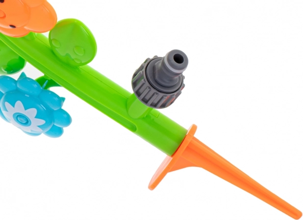 Montāža ir maksimāli vienkārša: ieduriet smaili zemē, pievienojiet dārza šļūteni ar standarta ātrspraudni – un gatavs. Izturīgā plastmasa kalpos vairākas sezonas, bet spilgtās krāsas aicina atkal un atkal spēlēties.