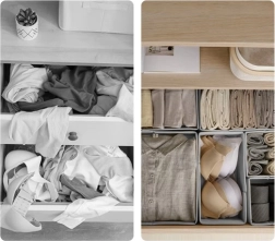 Stilīgs un praktisks RUHHY atvilktņu organizators apakšveļas un aksesuāru glabāšanai ir jūsu jaunais palīgs kārtības uzturēšanai. Pateicoties stabilitātei pēc salikšanas un izturībai ikdienas lietošanā, tas ir ideāla izvēle jebkurai mājsaimniecībai.