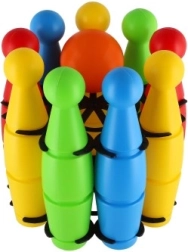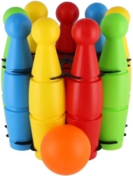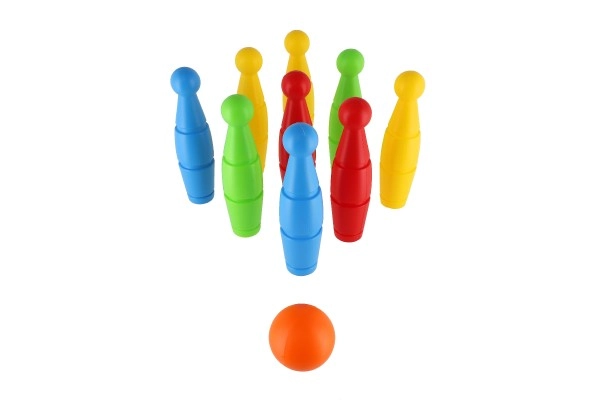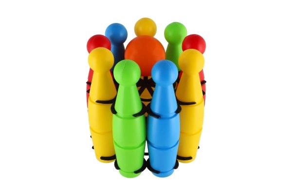 Jautrs komplekts mazajiem boulinga spēlētājiem satur 9 krāsainus plastmasas ķegļus un plastmasas bumbu. Viegla un droša rotaļlieta lietošanai telpās un dārzā palīdz attīstīt smalko motoriku, koncentrēšanos, precizitāti un godīgu spēli. Ķegļu augstums ir 24 cm, un viss komplekts ir ērti iepakojumā ar sietiņu.