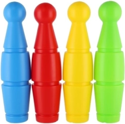 9 plastmasas ķegļi, 1 plastmasas bumba