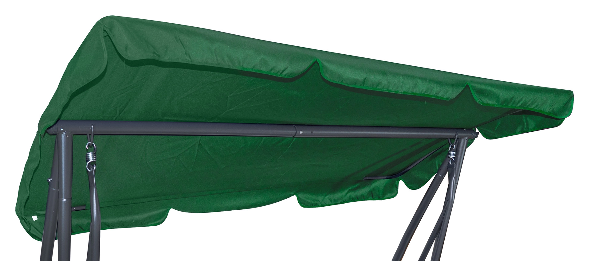Jumtiņš vienmērīgā zaļā krāsā piešķirs jūsu šūpolēm svaigu un elegantu izskatu. Papildus aizsardzībai jumtiņam ir arī dekoratīva volāna apmale, kas piešķir stilīgu akcentu.