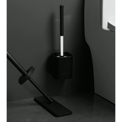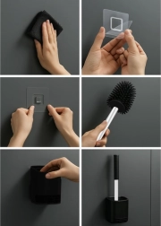 Komplektā iekļautais pašlīmējošais turētājs ļauj sienas montāžu bez instrumentiem. Alternatīvi birsti var izmantot kā brīvi stāvošu.