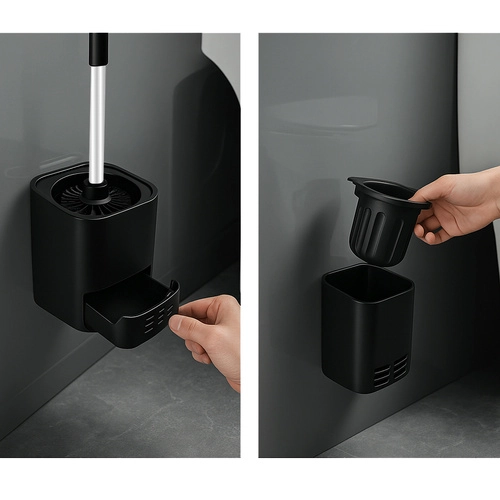Komplektā ir ventilējams turētājs ar noteces atvilktni un iespēja uzstādīt bez urbšanas ar pievienoto pašlīmējošo pamatni. Garais nerūsējošā tērauda rokturis ērti guļ rokā un iztur gan ikdienas, gan agresīvākus tīrīšanas līdzekļus.