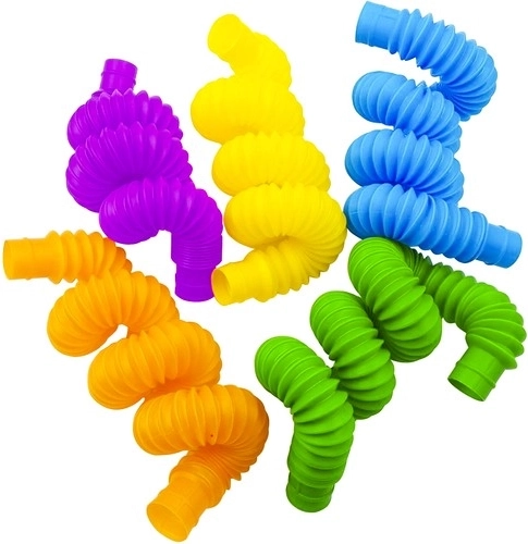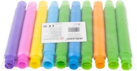 Šīs trubiņas ne tikai var savienot, bet tās var arī izstiept, un salocīšanas/izstiešanas laikā tās rada patīkamu skaņu. Tas padara tās par ideālām rotaļlietām spriedzes mazināšanai un rotaļīgās radošuma attīstīšanai.